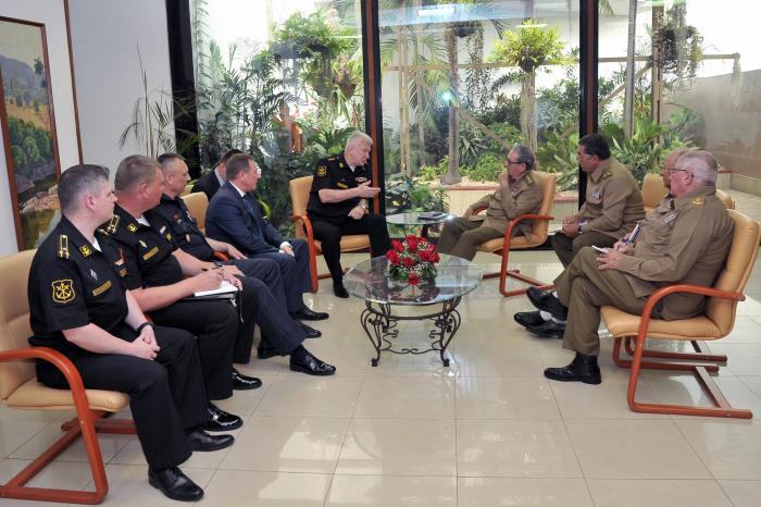 Le général d'armée Raul Castro Ruz, Premier secrétaire du Comité central du Parti communiste de Cuba, a reçu dans la matinée du vendredi 21 le commandant en chef de la marine de guerre de la Fédération de Russie, l'amiral Nikolaï Evmenov, qui effectue une visite de travail dans notre pays.