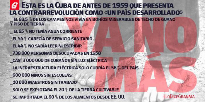 Bien entendu, un tel inventaire d'arguments ne saurait convenir aux « restaurateurs de liberté », à ceux qui rêvent d’un retour aux années 50, et les « experts » comme les naïfs qui « avalent » la supercherie ne diront surtout pas que la cause de tout cela était la condition de néo-colonie yankee, des maux qui avaient plongé le pays dans une situation de chaos, avec les niveaux les plus indignes de sous-développement, de dépendance et à la merci d'une camarilla de militaires assassins, de fonctionnaires vénaux et de mafieux.