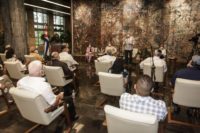 Le président s’exprimait face à des représentants d'institutions religieuses et d'associations fraternelles de l'Île, lors d'une réunion qui faisait suite à d'autres rencontres avec différents secteurs de la société, afin de réfléchir ensemble, comme l'a déclaré le chef de l'État, à la manière de poursuivre la construction de la Cuba dans laquelle tous ses enfants auront leur place dans l'unité, le respect mutuel et l'attachement aux aspects les plus exaltants de la vie.