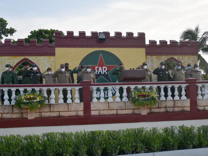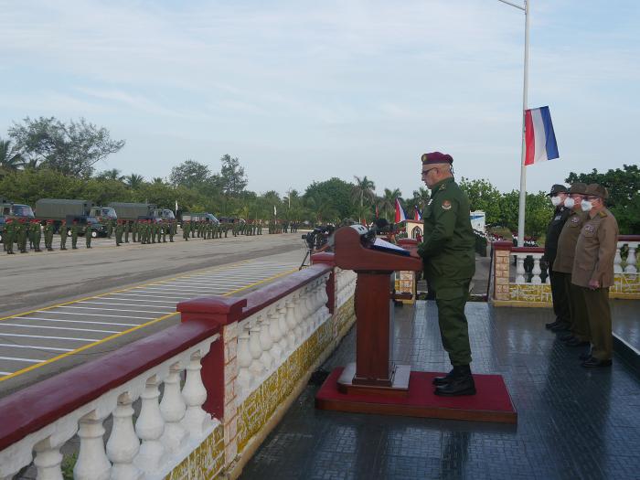 « En ces temps de pandémie et de multiplication des actions hostiles des ennemis de la Révolution, les Troupes de prévention, avec le ministère de l'Intérieur, ont joué un rôle important dans la protection du peuple et de sa tranquillité », a déclaré le général d'armée dans une lettre de félicitations lue par le général de division José Miguel Gomez del Vallín, chef de la direction des FAR.