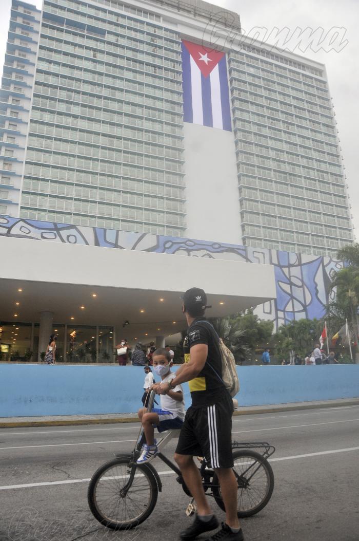 À l'occasion de la Journée de la culture cubaine, le plus grand drapeau national jamais réalisé, de 14 mètres de large et 28 mètres de long, a été déployé sur la façade de l'hôtel Habana Libre. Il a été confectionné par le Groupe de création artistique Loida, de la branche havanaise du Fonds cubain des biens culturels.