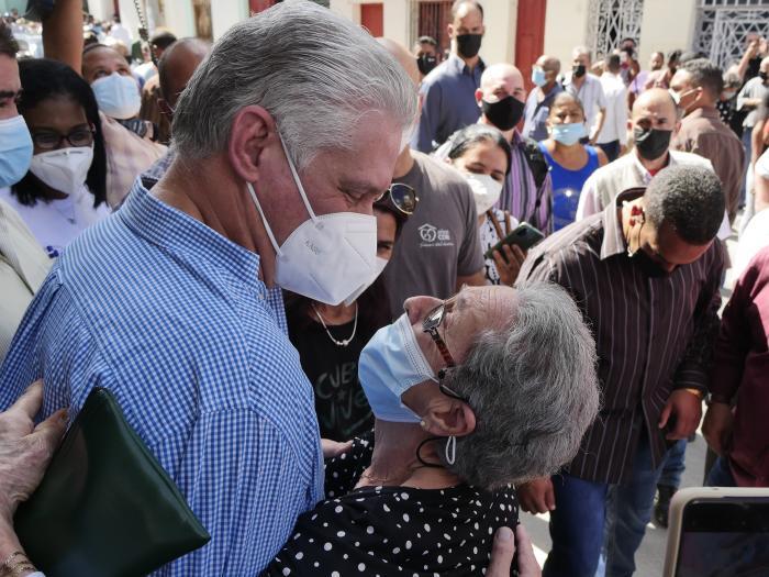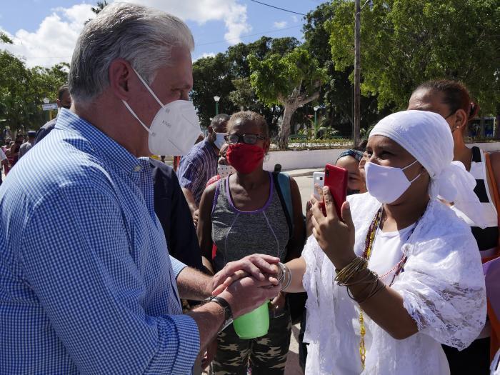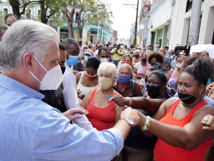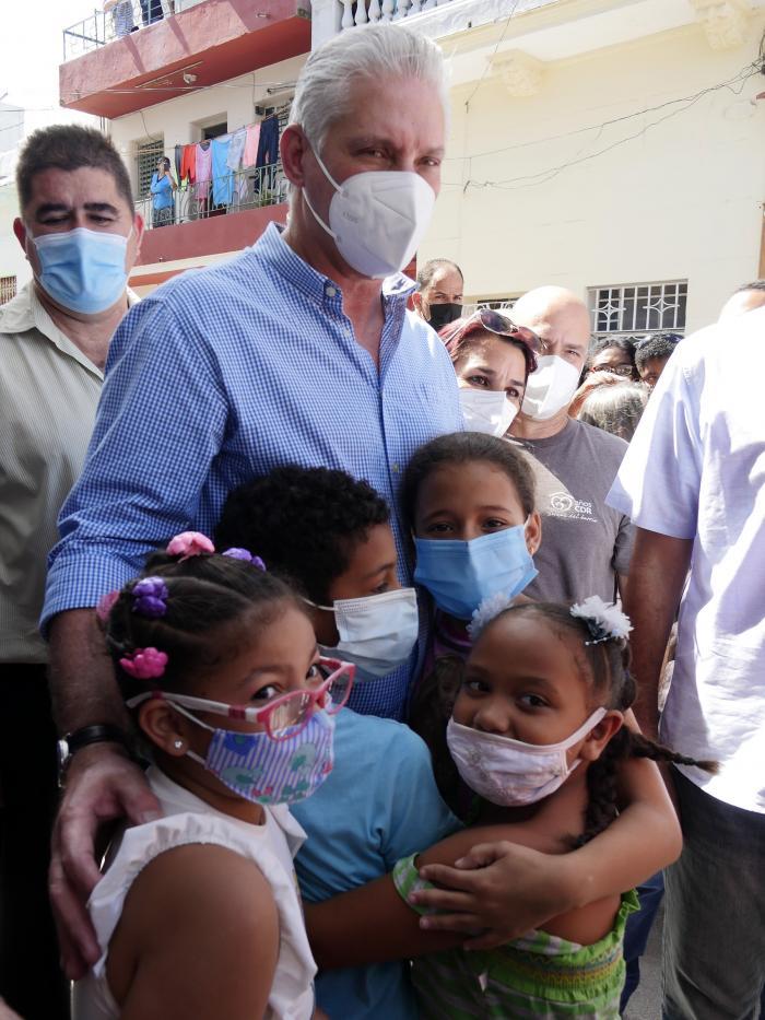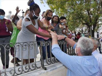 « Diaz-Canel, nous avons confiance en vous ! », a-t-on entendu crier depuis un trottoir. Ce à quoi il a répondu: « Et moi, j’ai confiance en vous ! » Le président a poursuivi son chemin et s'est arrêté devant le monument aux martyrs de Regla, ainsi que devant la plaque sur laquelle on peut lire : « Regla, 1836-1996. Aux Africains qui, en 1836, ont fondé dans cette ville la Société secrète Abacua. »