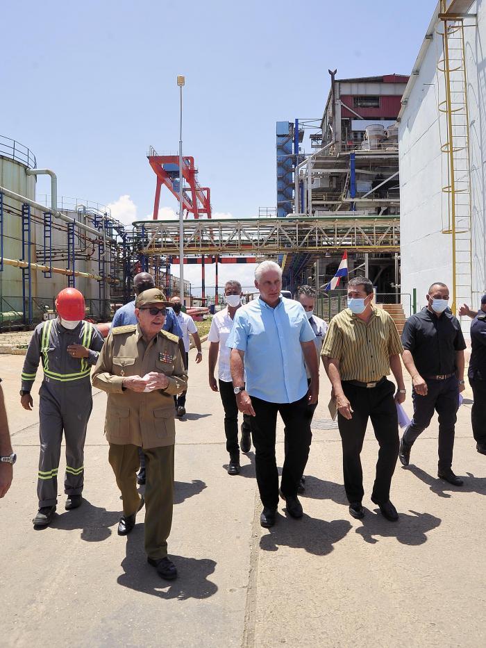 À la fin de l'échange, le Général d'armée Raul Castro et le président Diaz-Canel, accompagnés d'Ernesto Santiesteban Velazquez, Premier secrétaire du Parti à Holguin, et de Julio César Estupiñan Rodriguez, gouverneur de la province, ont visité plusieurs zones de la centrale thermoélectrique, la plus grande du pays, dotée d’une capacité d'environ 500 mégawatts.