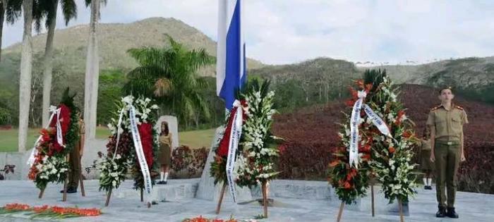Des couronnes de fleurs adressées par le leader de la Révolution cubaine Raul Castro Ruz, son fondateur et son chef, du Premier secrétaire du Comité central et président de la République, Miguel Diaz-Canel Bermudez, du Conseil d'État et du peuple cubain accompagnaient l’hommage.