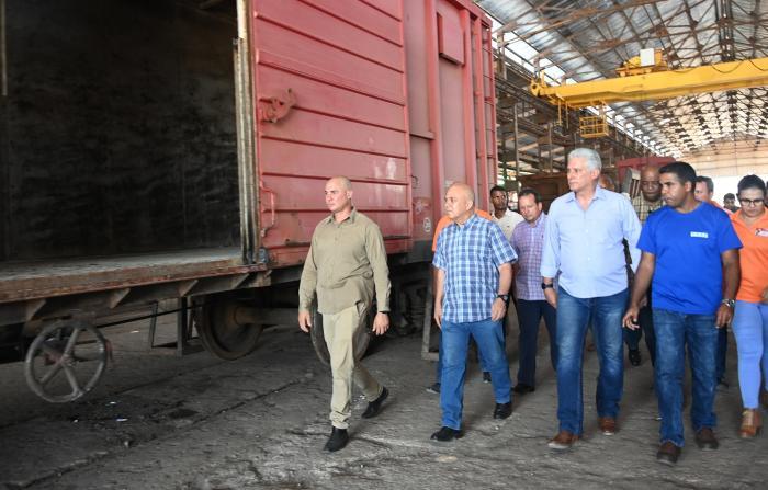 L’Unité d’entreprise de base (UEB) Atelier ferroviaire 9 de Abril – dernière visite à l’ordre du jour de l'après-midi – illustre également la manière dont la réflexion peut évoluer : le président y a fait l'éloge des nouvelles voies vers lesquelles se tourne le collectif des travailleurs, qui dispose d'une grande capacité d'innovation. Dans cette situation, par exemple, ils travaillent actuellement à la transformation des bus Diana en autorails.