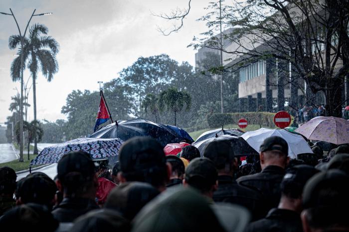Qu’aurait bien pu faire la pluie si au-dessous se trouvait la Patrie ? Et la Patrie, ce sont eux, les 32, et c'est nous. Qui aurait-elle pu faire s’en aller ? Il y avait Cuba, et les Cubains ! •