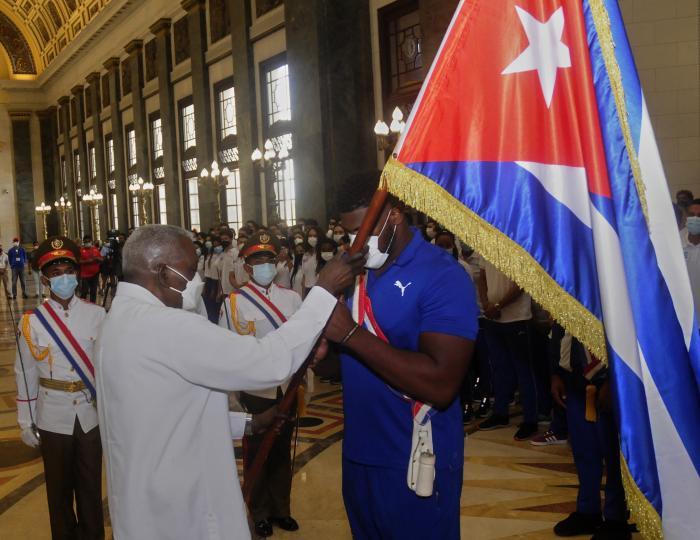 Au terme des paroles d'Esteban Lazo, qui est également membre du Bureau politique, Melany Mattheus, a souligné l'engagement de la délégation, avant d’ajouter : « nous irons avec l'engagement de défendre les valeurs du sport comme une conquête de la Révolution. Nous serons fidèles aux personnes qui nous regarderont et nous nous battrons pour mériter leurs applaudissements ».