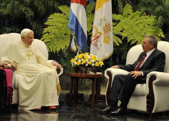Le 26 mars 2012, le président Raul Castro souhaitait la bienvenue au Pape Benoît XVI à l’aéroport de La Havane.Photo: Estudio Revolución