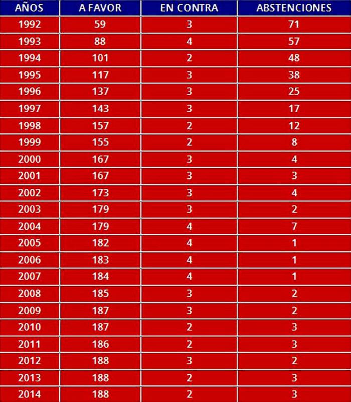 Les votes à l’Assemblée générale sur la nécessité de mettre un terme à cette mesure de coercition maintenue par dix administrations US, tant démocrates que républicaines, ont commencé en 1992.