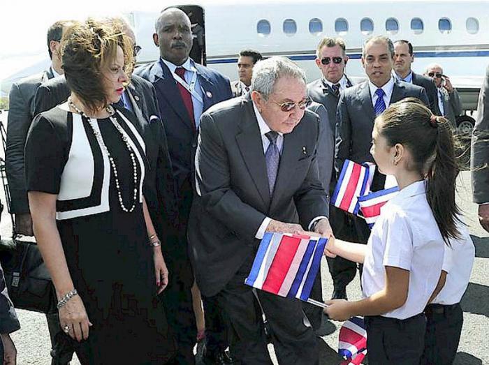 Vers 11 h (heure cubaine), le général d’armée a été reçu à l’aéroport international Juan Santamaria par la vice-présidente Ana Helena Chacon, qui lui a souhaité la bienvenue en déclarant que c’était un honneur pour elle de l’accueillir au Costa Rica, pays qui pour la première fois accueille un événement de cette envergure. Au pied de la passerelle de l’avion, Raul a également échangé des salutations avec un groupe d’enfants qui portaient des drapeaux costariciens.