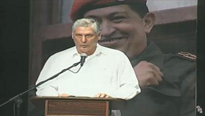 C’est avec une profonde émotion et un profond sentiment révolutionnaire que nous souhaitons partager avec vous certaines idées qui expriment le sentiment de Cuba, de Fidel et de Raul envers la République sœur bolivarienne du Venezuela, envers son peuple, envers son gouvernement légitime, et en particulier avec Chavez, car pour nous Chavez est toujours vivant (Applaudissements).