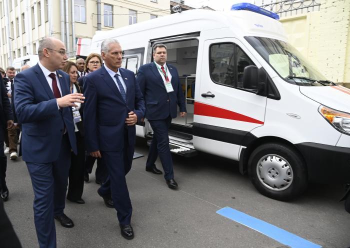 Lors d'un entretien avec le ministre de la Santé biélorusse et d'autres autorités sanitaires, Diaz-Canel a déclaré que ce qu'il avait vu ici avait renforcé sa conviction que Cuba et la Biélorussie, grâce à leurs relations historiques, leur volonté politique, leur sensibilité humaine et, du fait du potentiel créé, pouvaient devenir un exemple pour le monde.